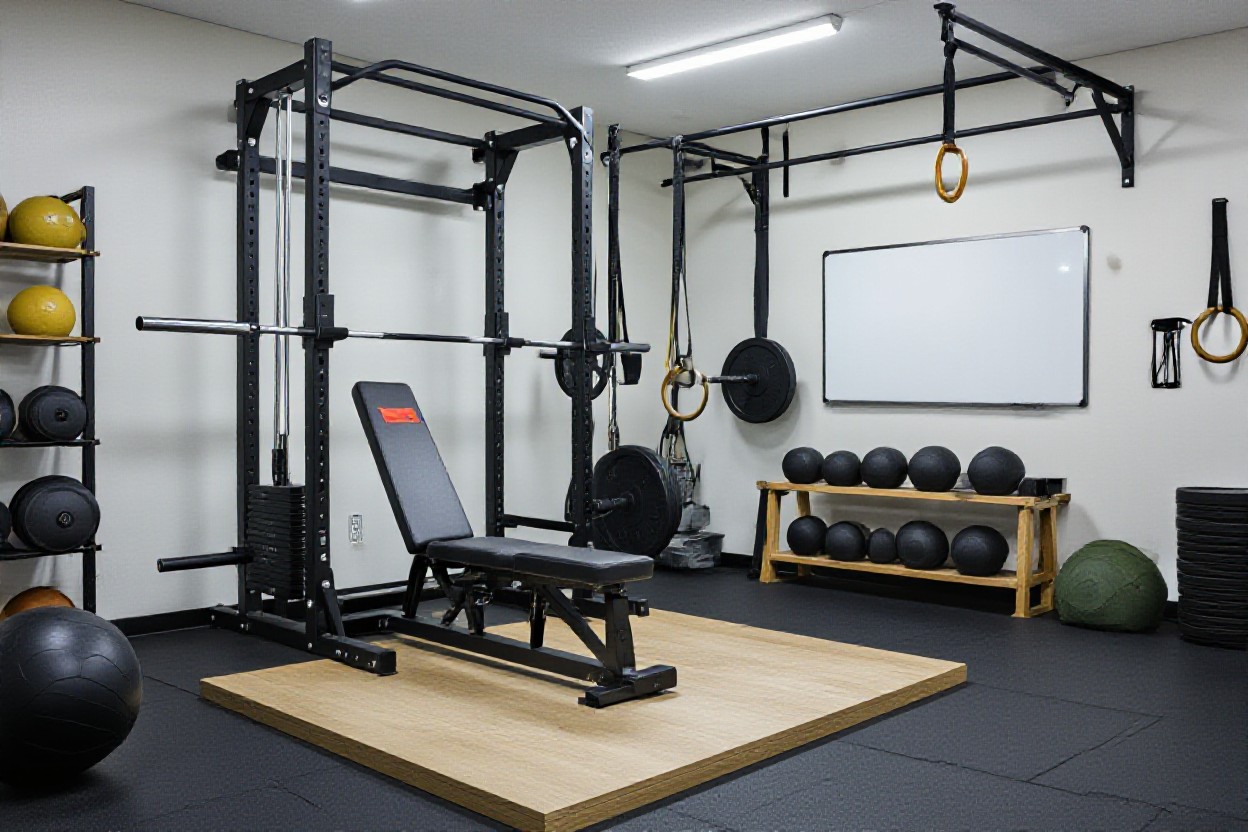If your space is tiny – like studio-apartment tiny – go vertical. Use wall-mounted racks, foldable squat racks, and hooks for bands, suspension trainers, and ropes. Store dumbbells and kettlebells under a bench or in a corner rack. As long as you can step forward, back, and laterally without kicking furniture, you can build a legit functional setup.